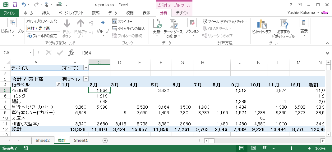 ピボットテーブルを作成する、管理する