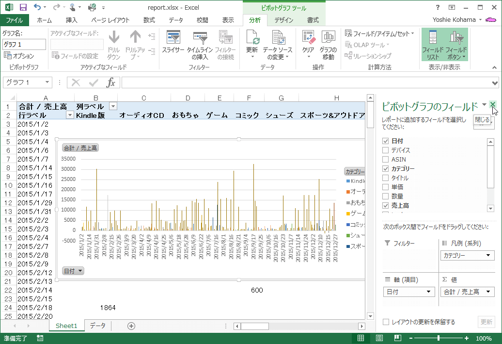 ピボットテーブルとピボットグラフを同時に作成