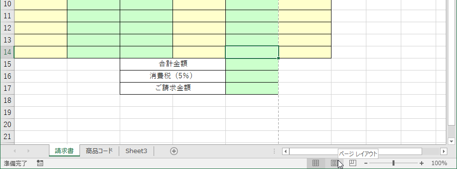 ページレイアウトビューに切り替えると、現在のワークシートの印刷結果がどのようになるかを確認できます。