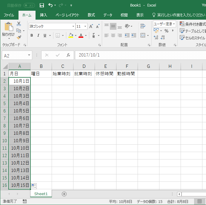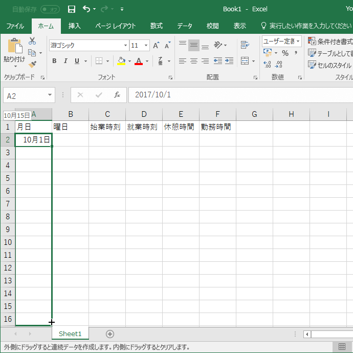 - 連続データが入力できました。