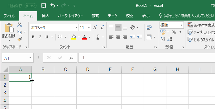 - セルの右下の■にカーソルを移動します。