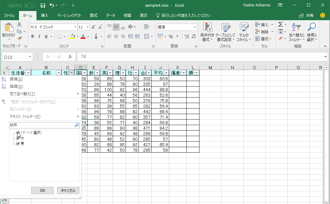 - [女]にチェックをつけて[OK]ボタンをクリックします。
