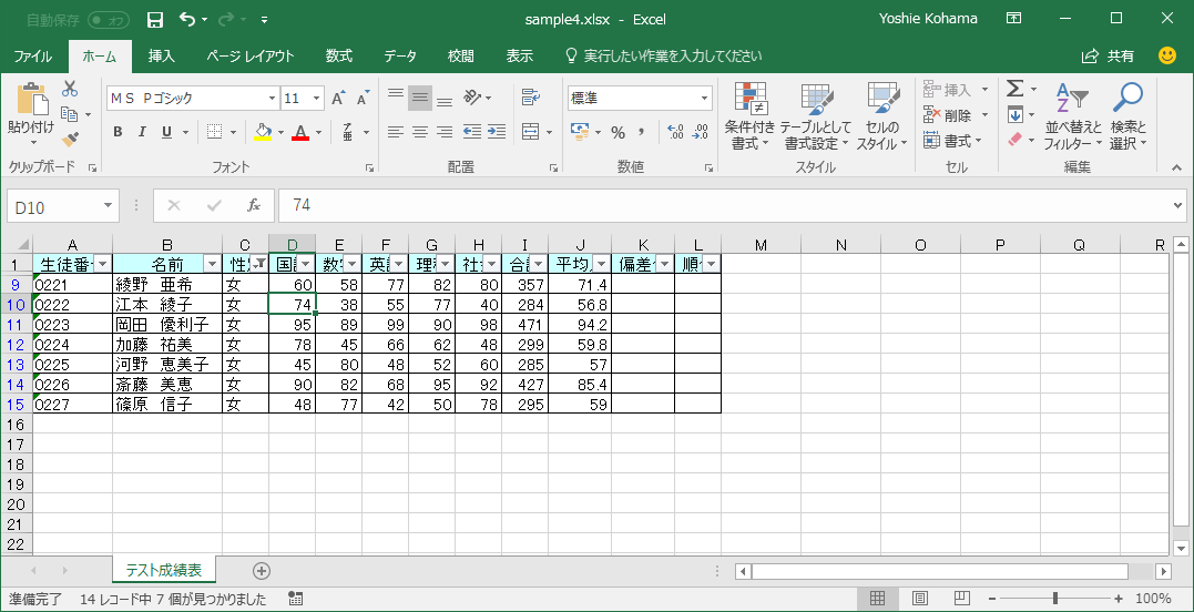 [ホーム]タブの[並べ替えとフィルター]を選択し、[フィルター]をクリックしてもOKです。