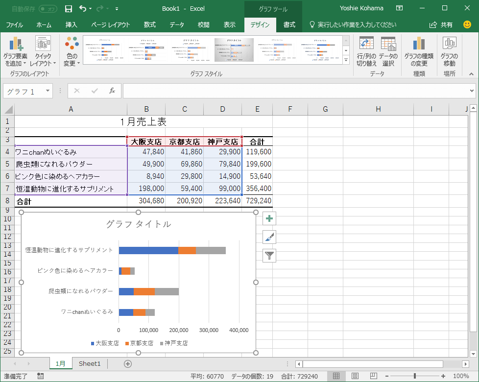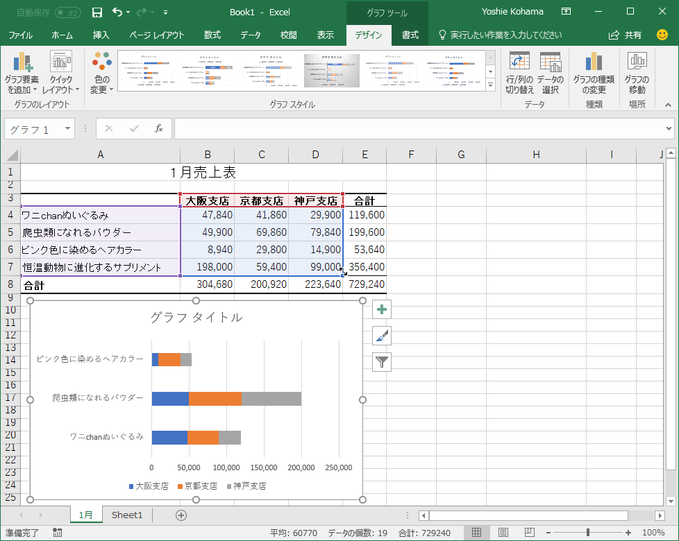 - データ範囲の大きさが変更され、グラフが連動して更新されました。