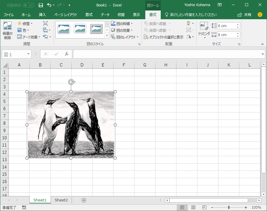 画像にアート効果を追加して、スケッチや絵画のように見えるようにするには、Excel 2016で対象となる画像を選択して[図ツール]の[書式]タブを開き、[アート効果]をクリックして、一覧からアート効果を選択します。