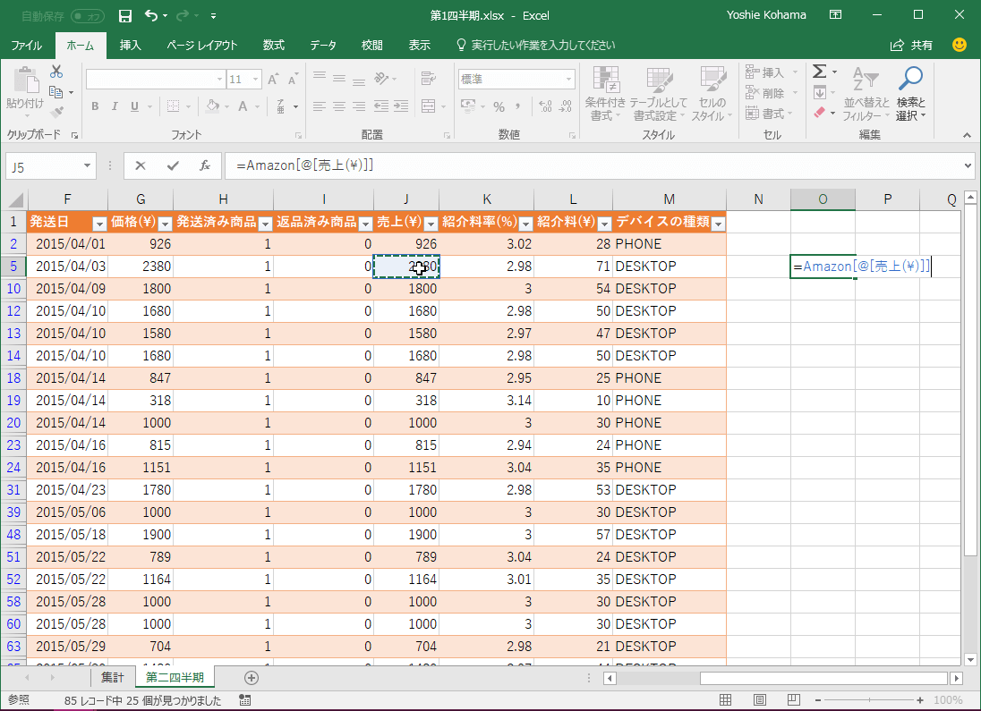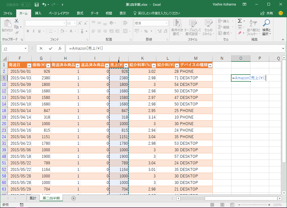 構造化参照を使ってデータを参照するには