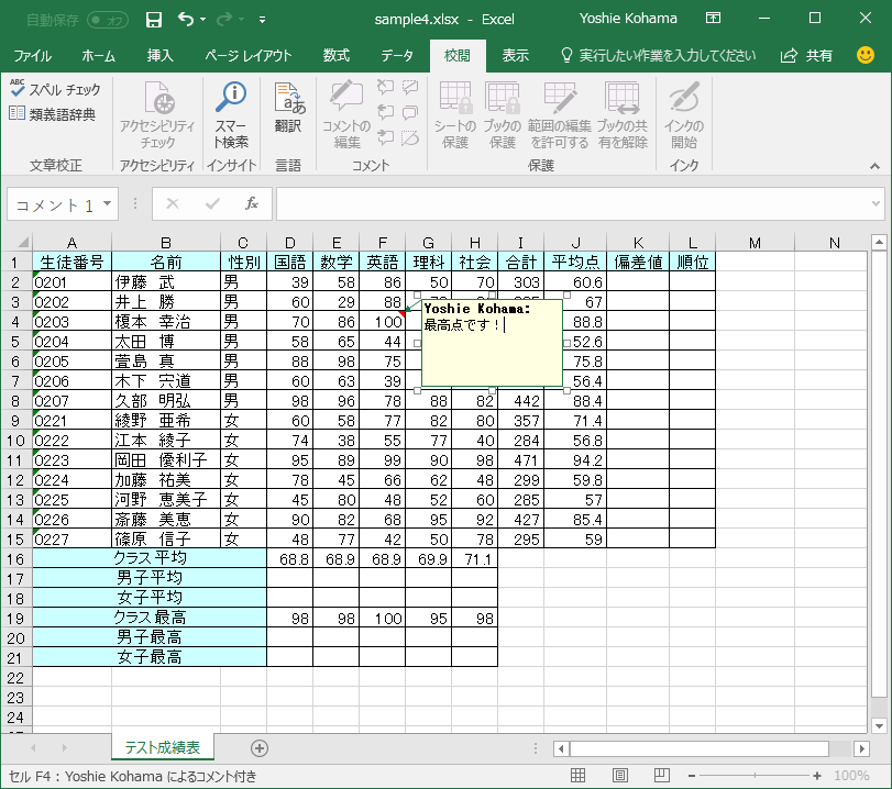 ブックの校閲を管理する|コメントの管理
