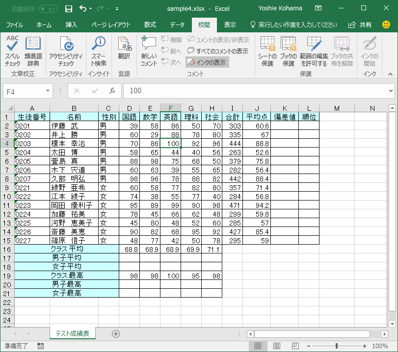 ブックの校閲を管理する|コメントの管理