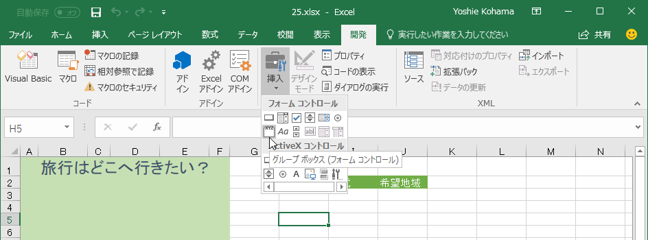 ここでは、グループボックスとオプションボタンを挿入する方法について説明します。
