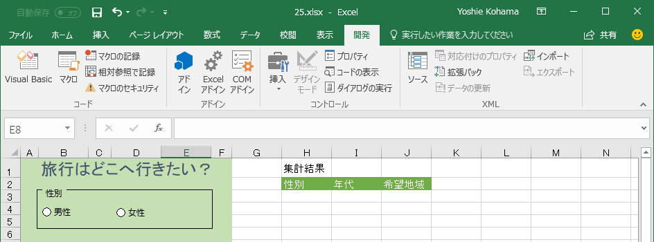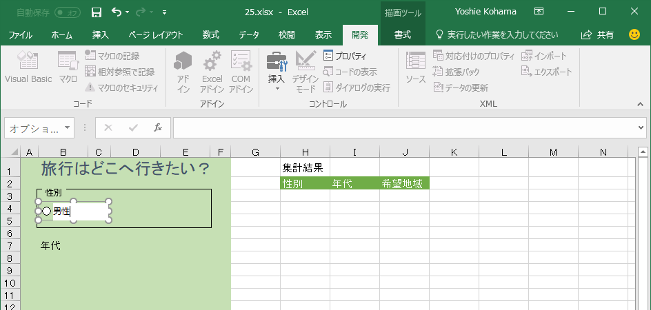 - 同じ要領で「女性」のオプションボタンを挿入します。