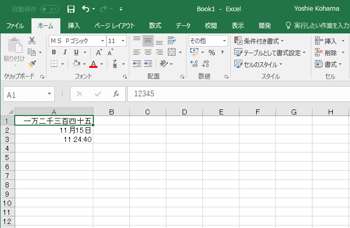- 漢数字で数値が表示されました。