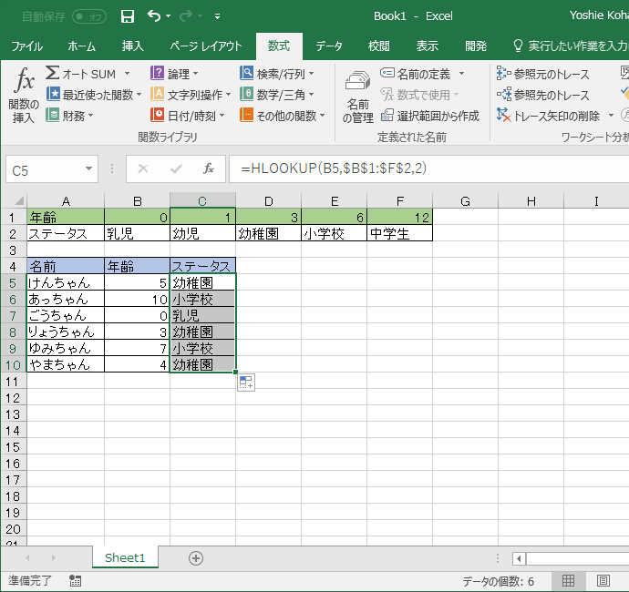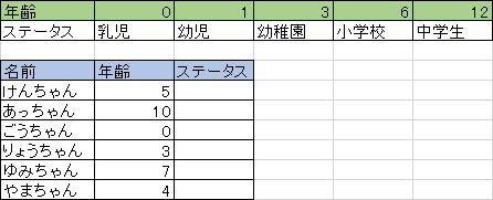 ここでは例として、年齢からステータスを求める方法を紹介します。