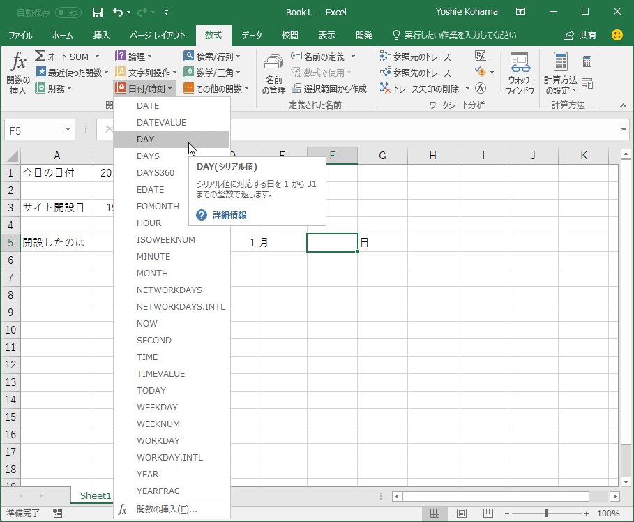 日付から日を求めるには