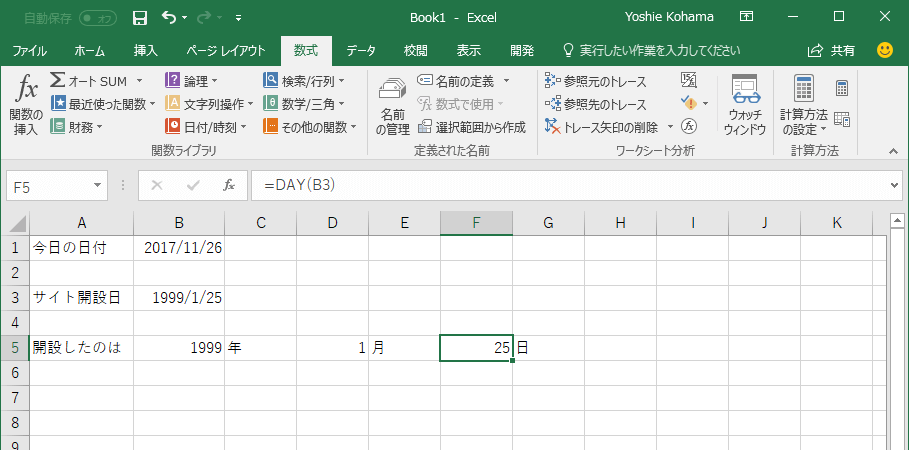 DAY関数で日を求める