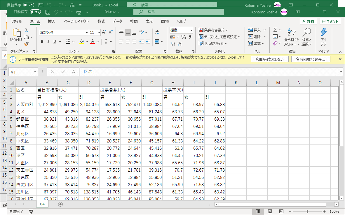 - CSVファイルが直接開きました。