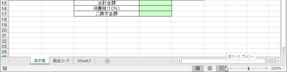 以下の2通りのパターンで改ページプレビューに切り替えられます。