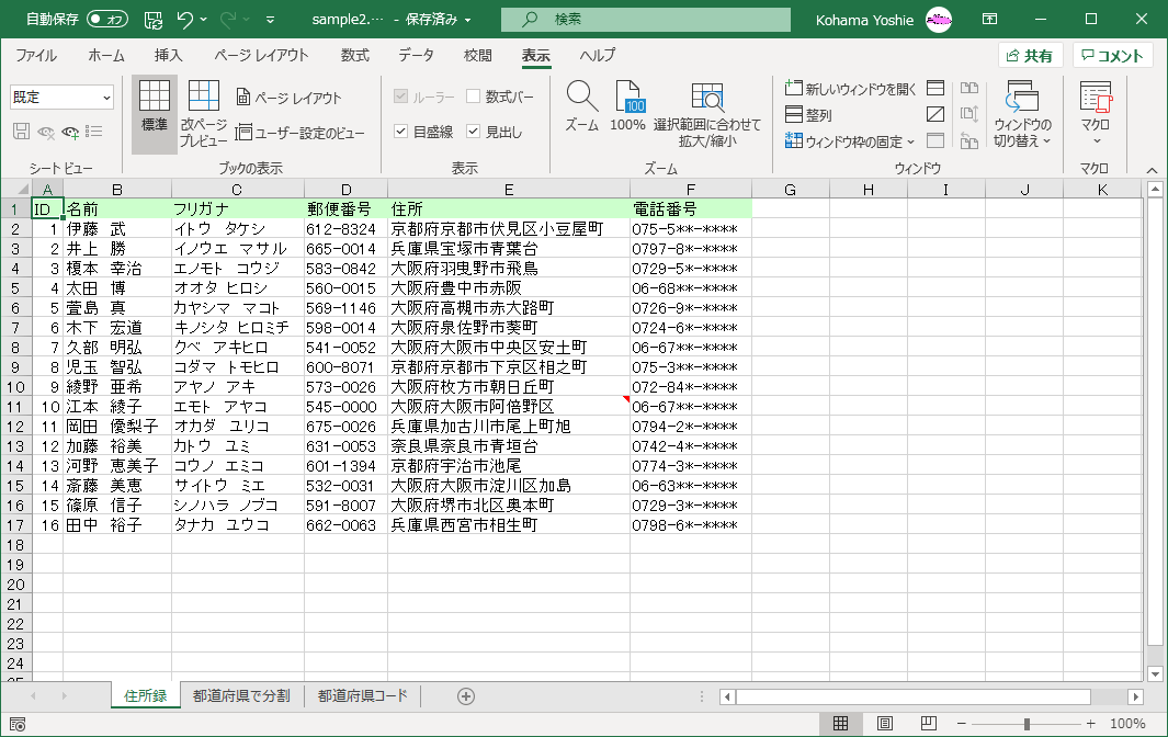 - [表示]タブを開き、[数式バー]のチェックを外します。
