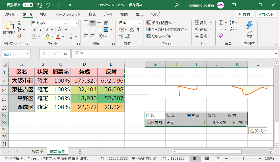 貼り付け- コピーしたデータのセルの内容と書式をすべて貼り付けます。