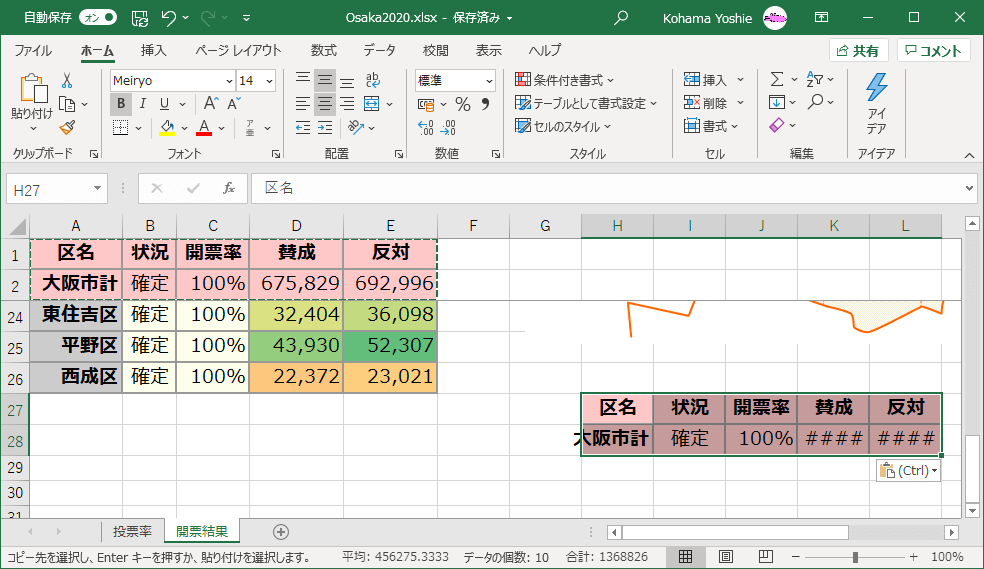 - 数式結果の値と元の書式を貼り付けたいセルをコピーします。