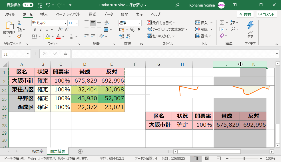 列幅- コピーしたセルの内容と列幅を貼り付けます。