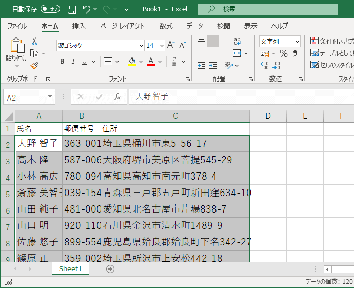 [フォントサイズの縮小]でフォントサイズを拡大や縮小が行えます。