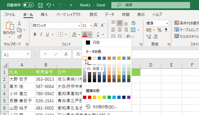 - 一覧から色を選択します。