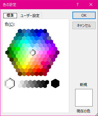 [その他の色]をクリックし、[色の設定]ダイアログボックスから選択できます。