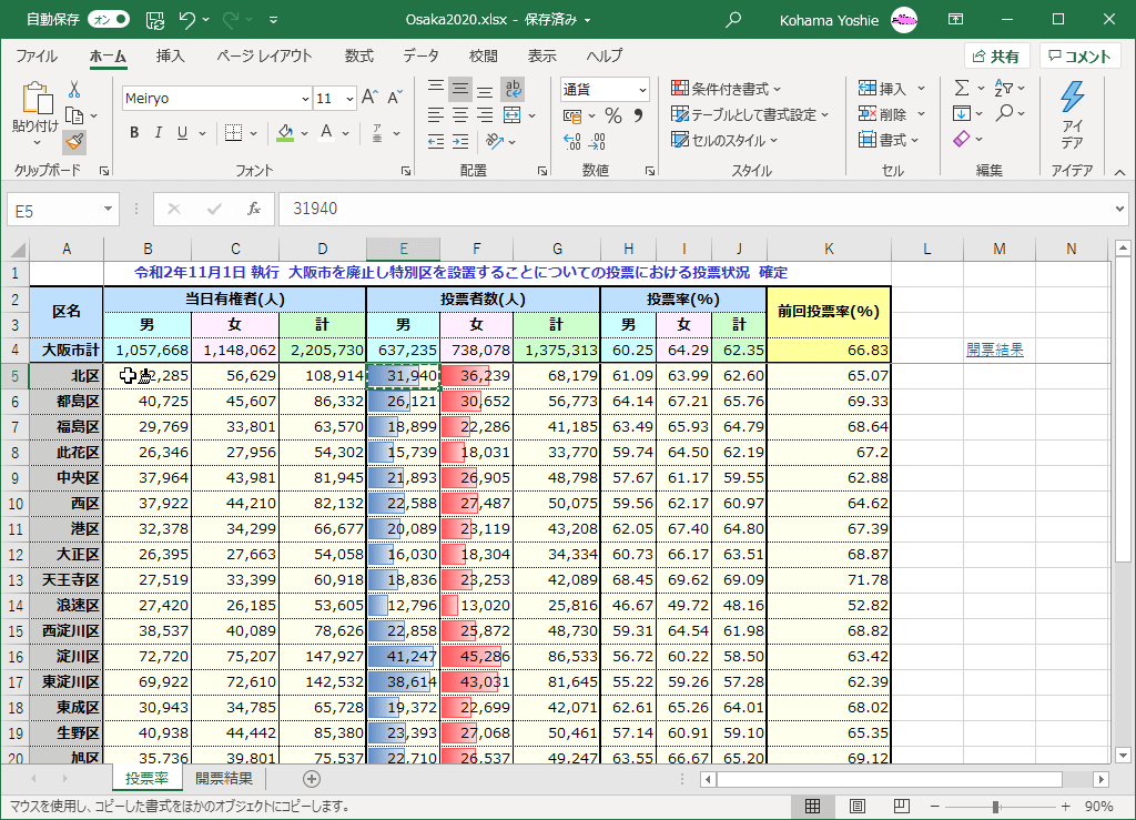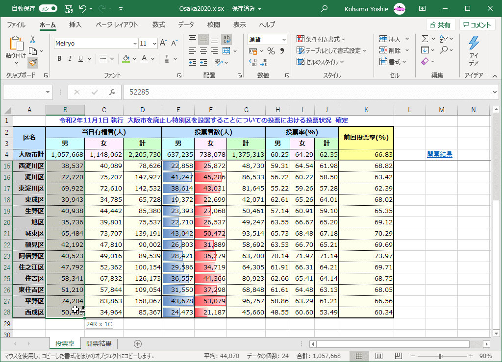 になったら、マウスを使用し、コピーした書式を適用先にドラッグしてコピーします。