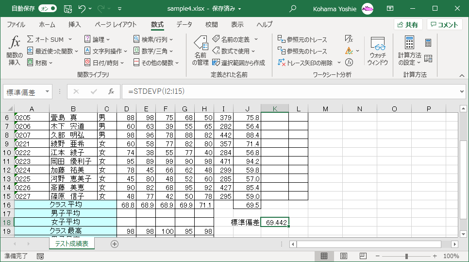 セル範囲に名前をつけることにより、参照先が明確になり、その名前を数式に利用できるようになります。 [数式]タブを開き、[定義された名前]グループの[名前の定義]をクリックして、名前を定義します。