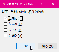 - 名前を自動生成したい対象(最上部の行または左端の列)を選択して[OK]ボタンをクリックします。