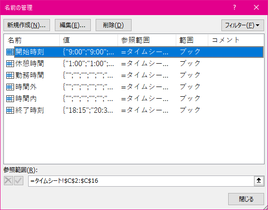 名前付き範囲を定義する、参照する