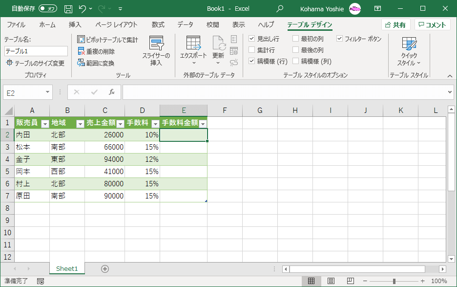 - テーブル内にカーソルを移動し、[テーブル デザイン]タブを開きます。