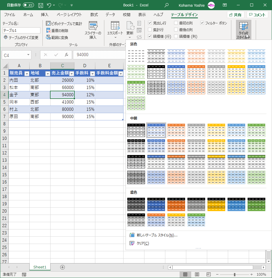 - テーブルのスタイルが削除され、そのスタイルが適用されたテーブルスタイルがもとに戻りました。