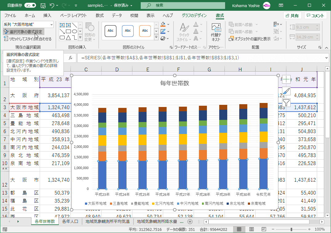 - グラフ上の変更したいデータ系列を選択します。