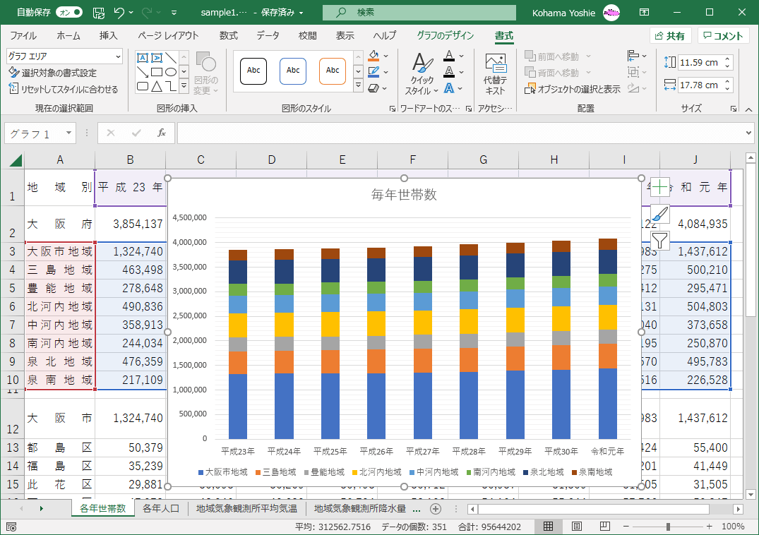 - グラフ要素を選択します。グラフ全体をリセットするにはグラフ全体を選択します。