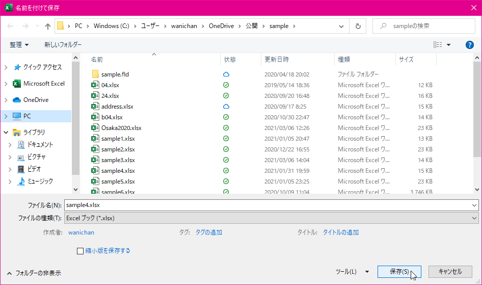 - [名前を付けて保存]ダイアログボックスの[保存]ボタンをクリックします。