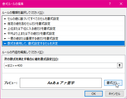 [書式ルールの編集]ダイアログボックスの[OK]ボタンをクリックします。