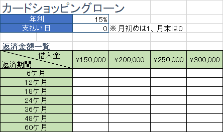 - 返済する期日を指定します。期末の場合は「0」、期首の場合は「1」を指定します。省略すると「0」になります。