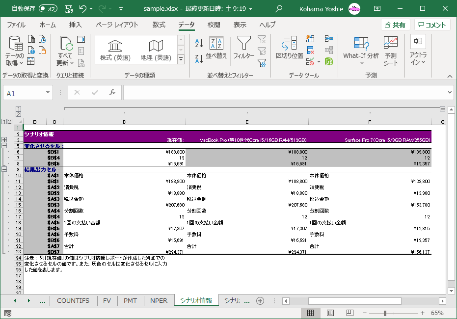 レポートの種類を[シナリオ ピボットテーブルレポート]にすると、ピボットテーブルのワークシートが生成されます。