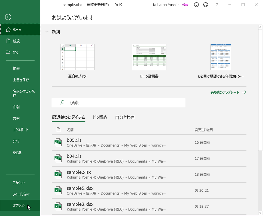 - [ファイル]タブを開き、[オプション]をクリックします。
