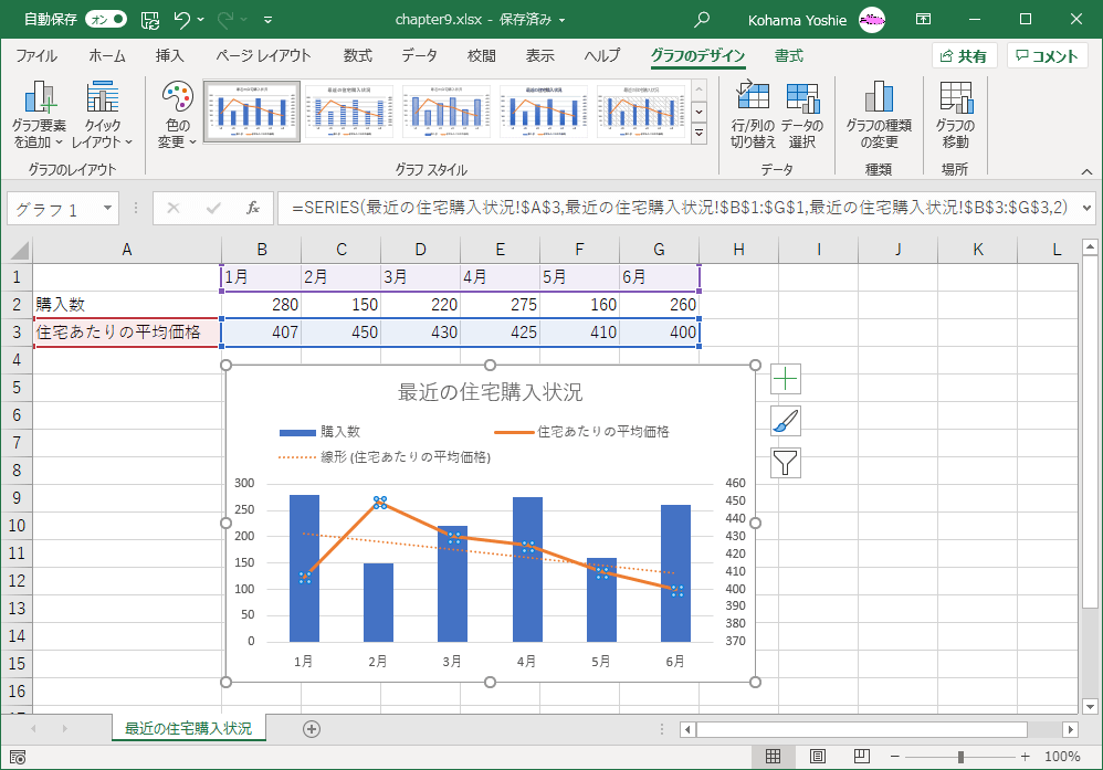 グラフに近似曲線や移動平均線を追加するには