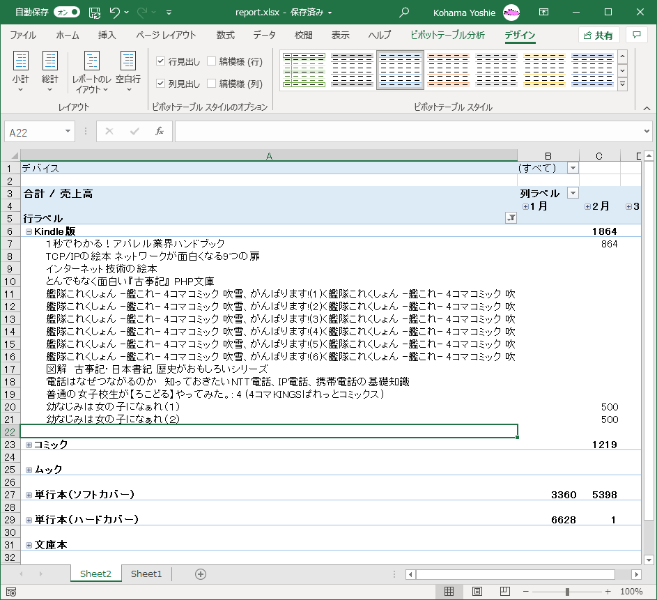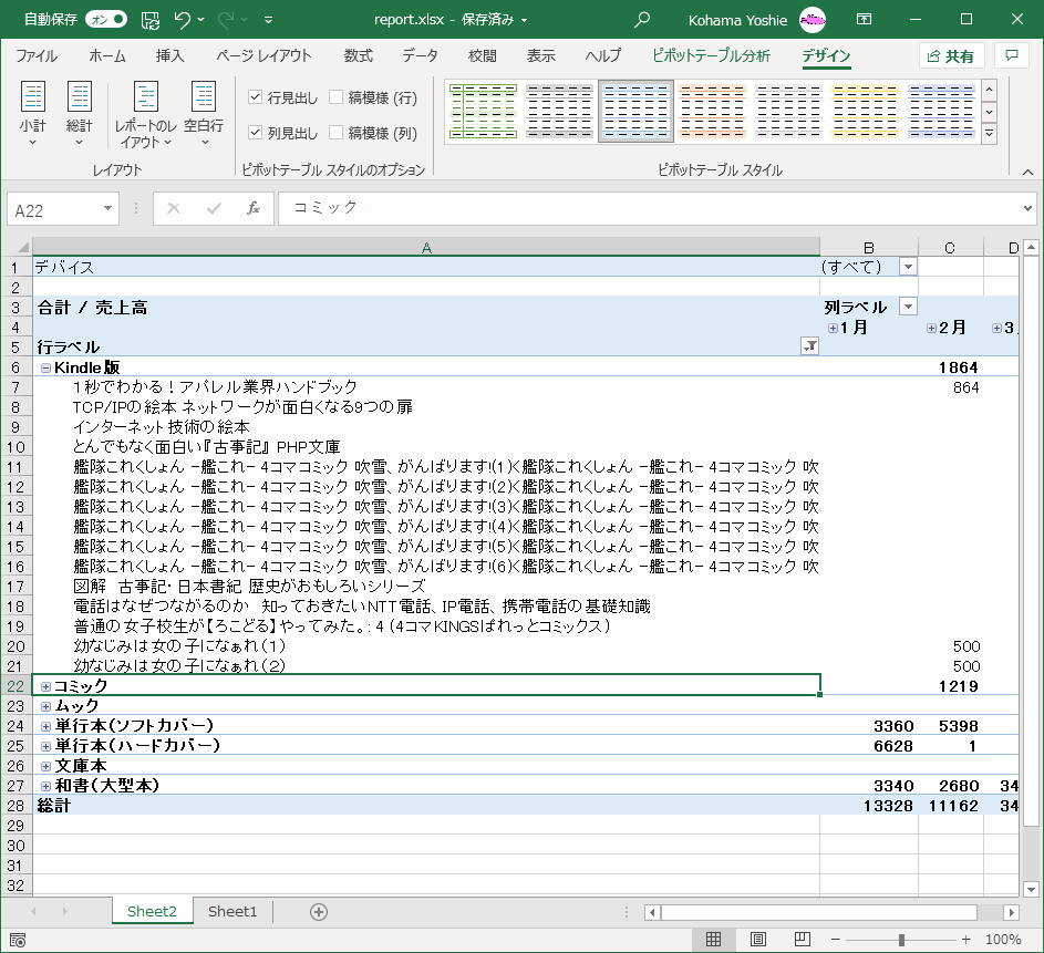 ピボットテーブルを作成する、変更する