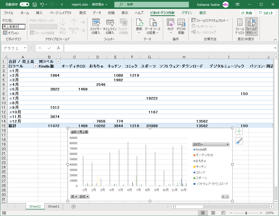 - ピボットグラフを作成する、変更する