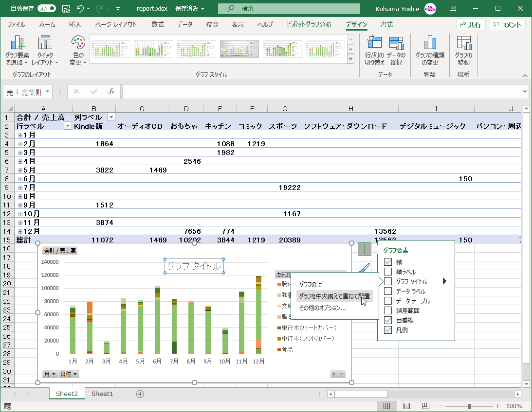 ピボットグラフのレイアウトを整えるには