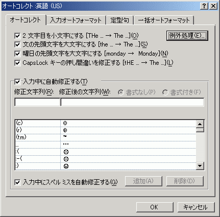 - 「文の行頭文字を大文字にする」のチェックをはずして、OKボタンをクリックします。