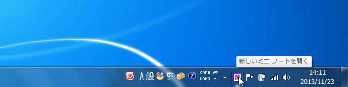 - あらかじめ、タスクバーの通知領域にOneNoteのアイコンを表示しておきます。『タスクバーの通知領域にOneNoteのアイコンを追加するには』を参考にしてください。