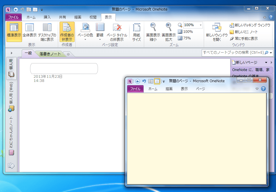 - [ウィンドウ]グループの[新しいミニノート]をクリックします。
