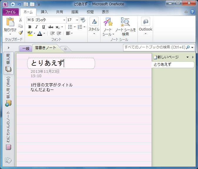 ページとミニノートの操作