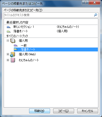 - 移動先を選択して[移動]ボタンをクリックします。
