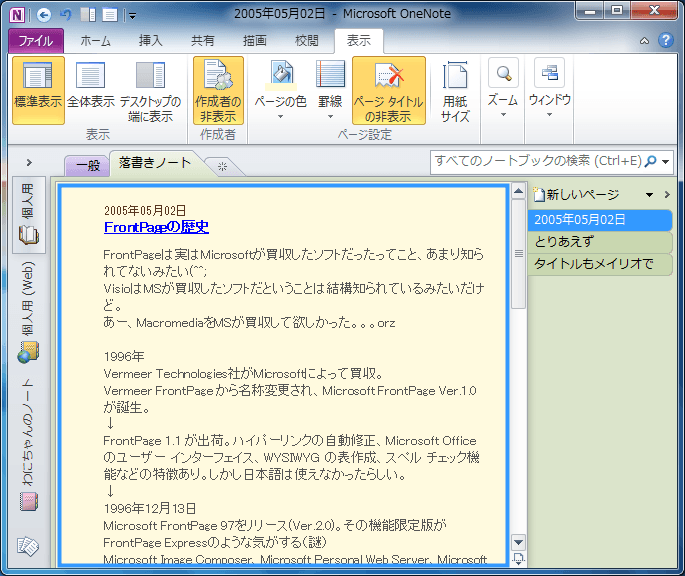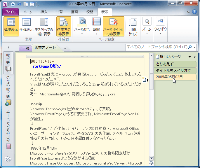 - 移動先のノートブックのセクションを開くと、ページが移動されました。